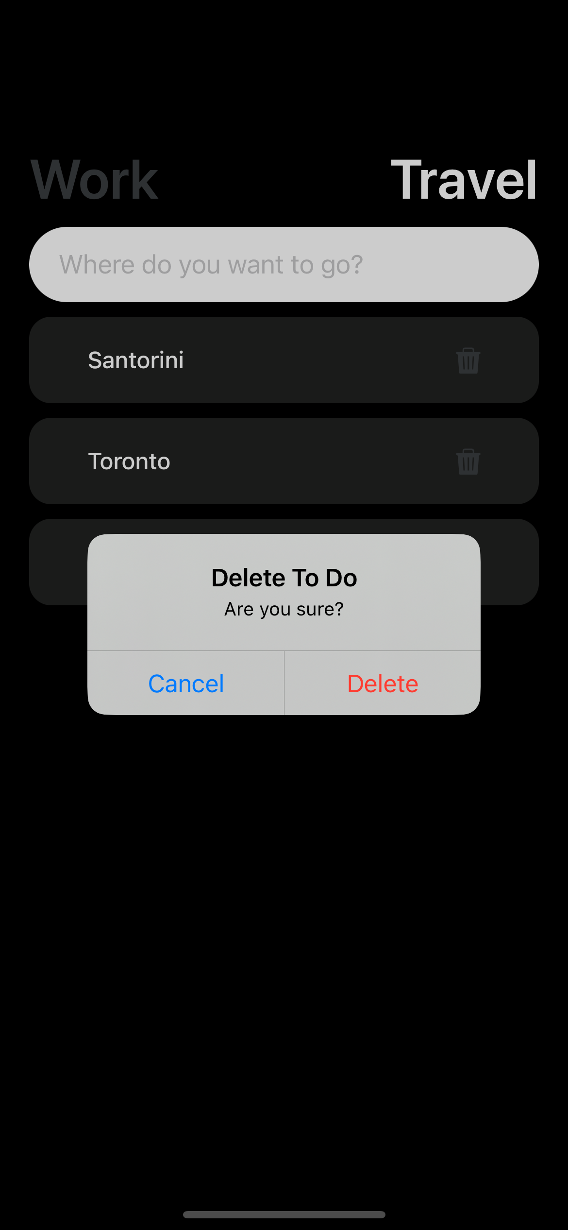 Work 일때, Travel 일때 보여주는 리스트 다르게 설정. working true or false 활용.