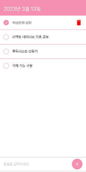 | [RN] study 4week / 할일 목록 만들기 ①-② (0) | 2023.02.26 |