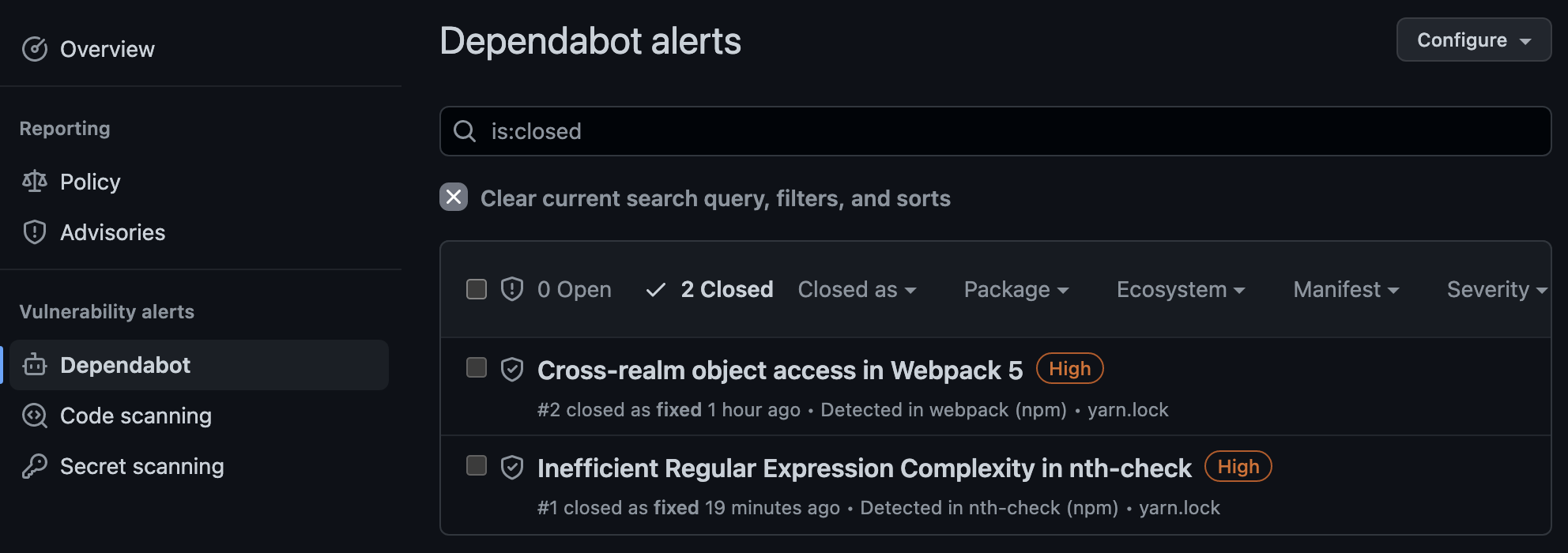 code10 2023. 3. 18. 23:05Dependabot alerts 해결
