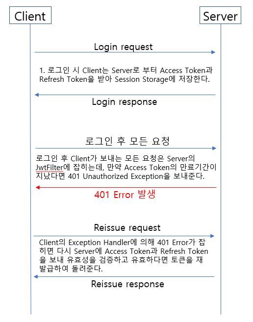 안전한 보안과 사용자 편리성을 위한 로그인 유지를 위해. access 토큰 만료 후 401에러가 떴는데, 이때 refresh 토큰으로 access 토큰을 재발행함으로써 로그인을 유지. 유효 시간을 늘리는 방식이 아닌 토큰 재발행을 활용했다.